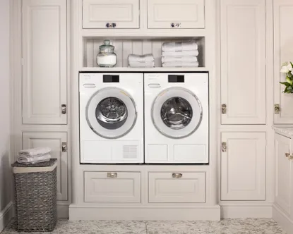She also advises adding a few towels to the wash to help balance the load and reduce noise. Just make sure not to use your best towels, so you don’t ruin them.