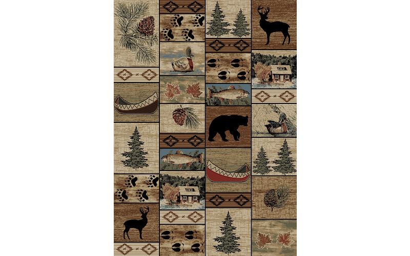 We like this Mayberry Rugs option for the subtlety of its design. If you want a suitably themed cabin rug, but without all the bears and paw prints, this could be the one for you. This pinecone-themed floor covering comes in a variety of different sizes, and as round, oval, and rectangular designs. It's made from polypropylene.