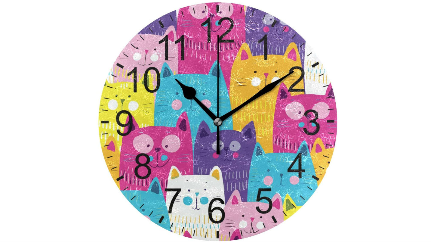 We also like the senya Cat Pattern Silent Round Wall Clock, which brings a pop of color to any wall. For even more color, don't miss out on the LUCASE LEMON ALEX Cute Cartoon Acrylic Wall Clock for a whole crowd of new feline friends. THe senya Cats in Love Wall Clock has a precious love scene, perfect for bringing a touch of romance to your room.