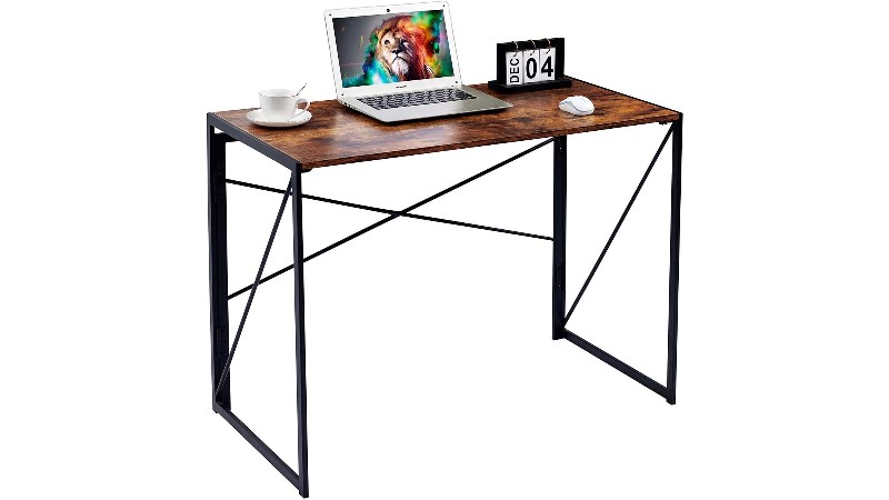 If you’re looking for a desk that will keep any space feeling open and airy, this design fits the bill with its lightweight style. It has a solid metal frame to give it strength and the desktop is made from stable MDF with an oak texture finish. Foldable, it’s ideal for renters and frequent house movers, or students.