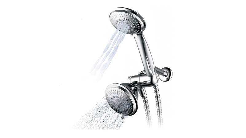 Get clean in the rain, except it’s flowing down from your own handheld shower head. This option from AquaDance has two faces, which provide up to 30 variations of spray patterns together. You won’t need any tools to install this shower head since all connections can be tightened by hand.