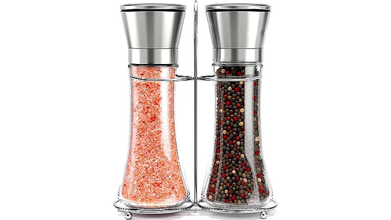 The Juvale stainless steel and glass salt and pepper shakers are another must-have choice. This set captures that classic diner style, its rotund profile mimicking a coffee pot and accommodating 4 ounces. Each shaker is constructed from stainless steel and features a glass bottom for convenient spice tracking.