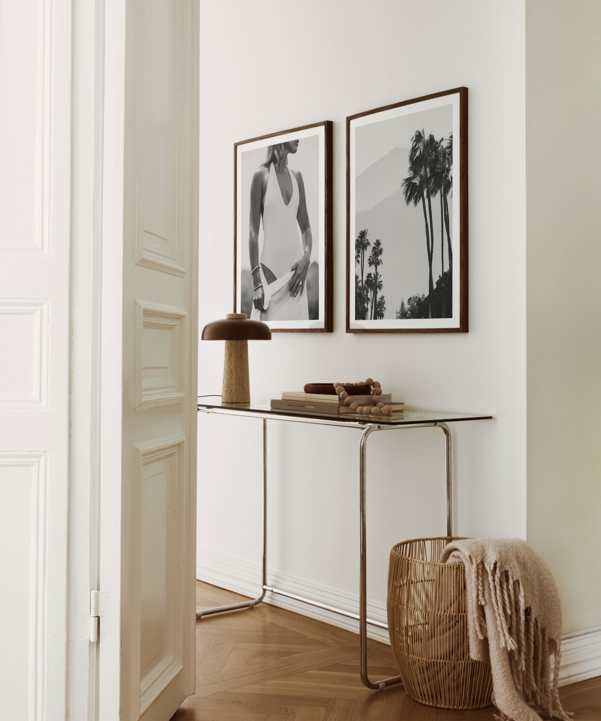 Opting for slimline furniture is a much better option than clunky entrance furniture. “Sleek floating consoles or shelves not only save space but also elevate the style,” explains Kropovinsky. “Having a larger table will take up more of the room's footprint,” adds Huber. This size of furniture will still provide enough room for keys, hat storage, and anything else you might need before leaving the house.