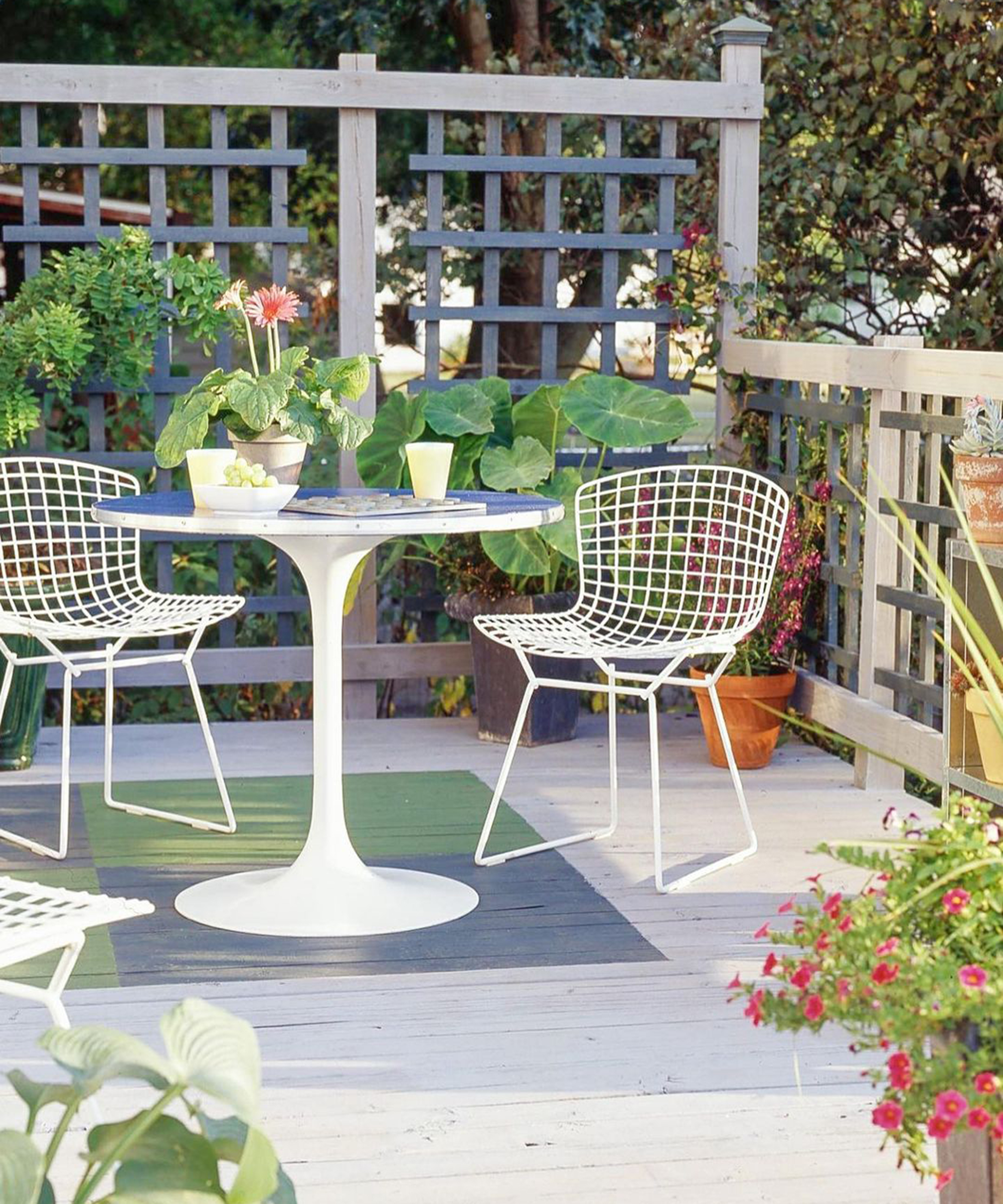 This small all-over decked area has been enhanced by color contrasts created with Cuprinol Garden Shades decking paint.