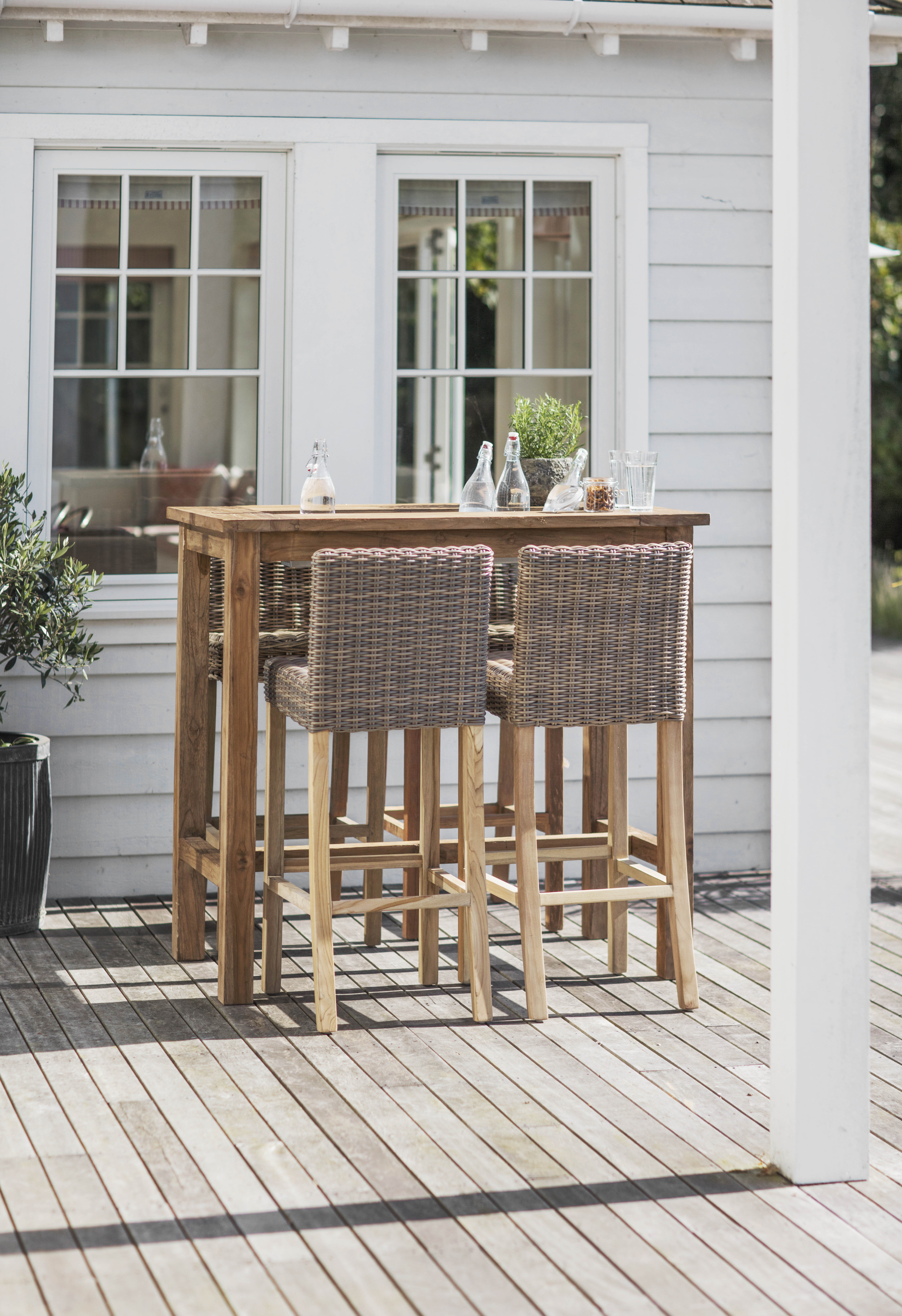 If you do want some of the best garden furniture out on your small garden deck, pick a patio dining set that has a small footprint. Dual-purpose pieces or built-in storage is a bonus, too. The St Mawes Drinks/Planter Bar Table from Garden Trading has a steel trough in the middle - perfect for cooling drinks, or creating a green display.