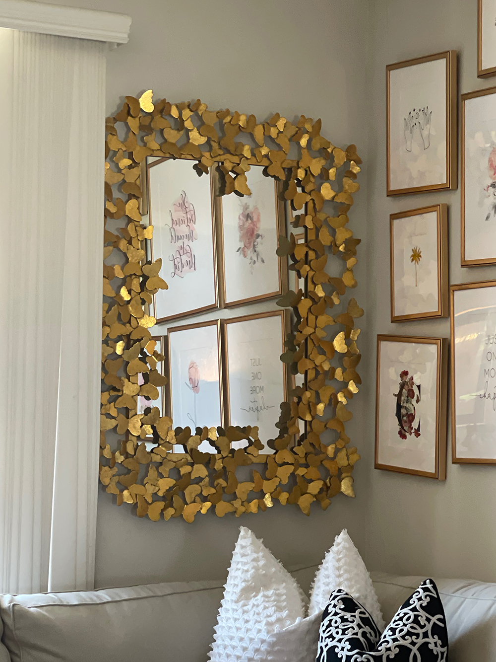 From larger-sized mirrors to intricately decorated butterfly versions, "every time guests walk in, they usually say that it's very French, which I'm not opposed to at all," and neither are we.