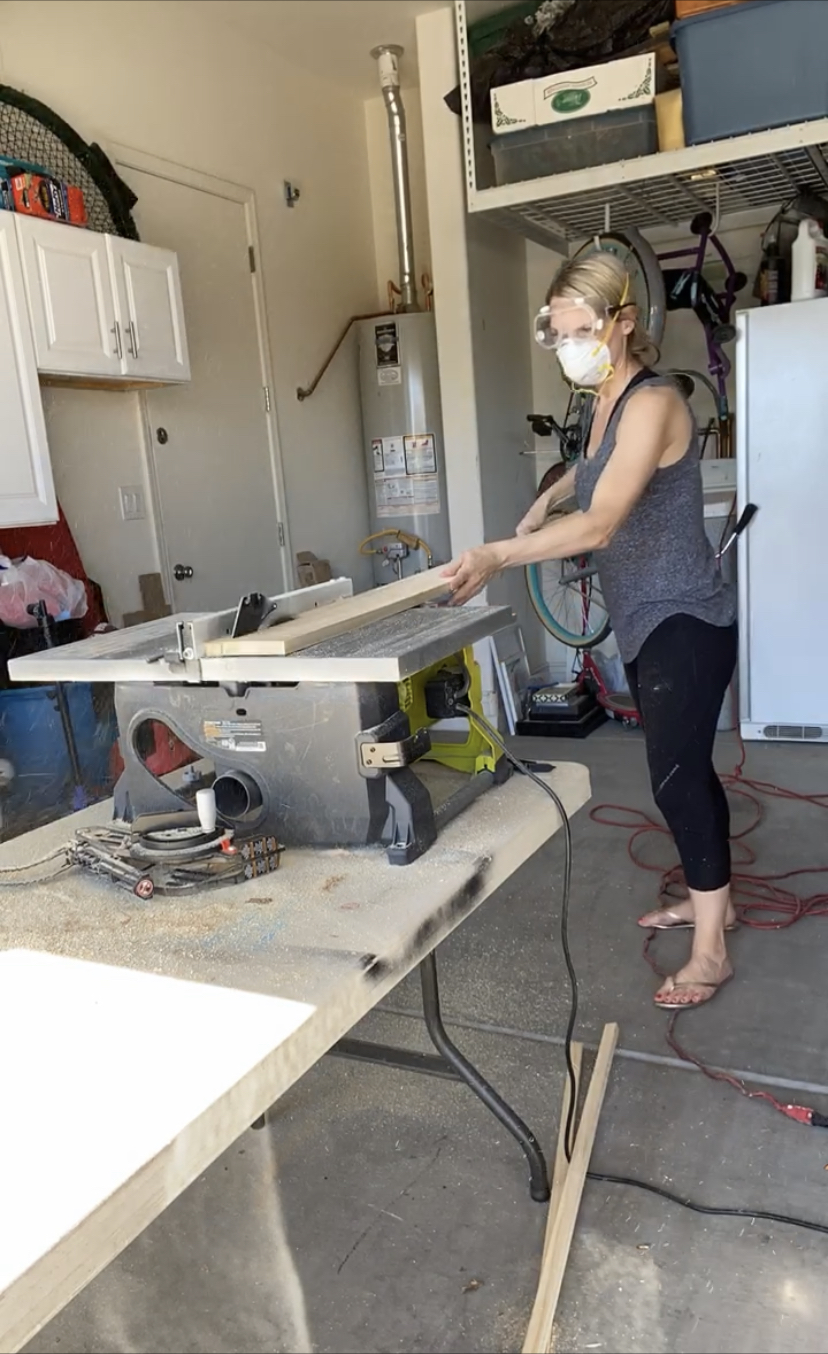 In order for the foam board and art mat to stay in the frame, I needed to create a “notch” for them to sit in. I lowered the blade of my table saw to just cut a ¼” groove into two sides of the piece of wood.